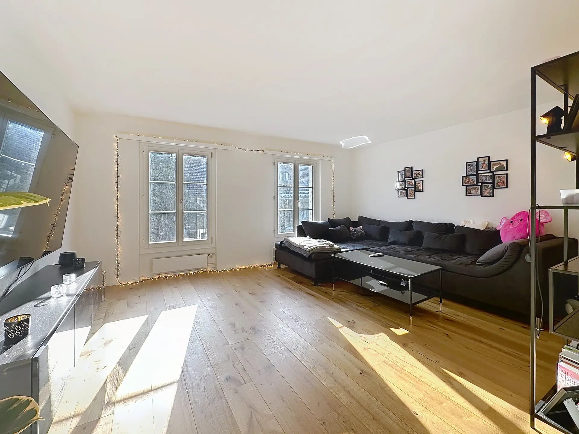 Mit einer Nettowohnfläche von rund 89 m² präsentiert sich die Wohnung spürbar grosszügig und gut proportioniert. Der offene Wohn-, Ess- und Kochbereich bildet das Herzstück des Zuhauses. Die moderne Küche mit hochwertigen Einbaugeräten ist funktional integriert und bietet ausreichend Platz für gemeinsames Kochen und Essen. Grosse Fensterflächen sorgen für helle Räume und ein angenehmes Wohngefühl.