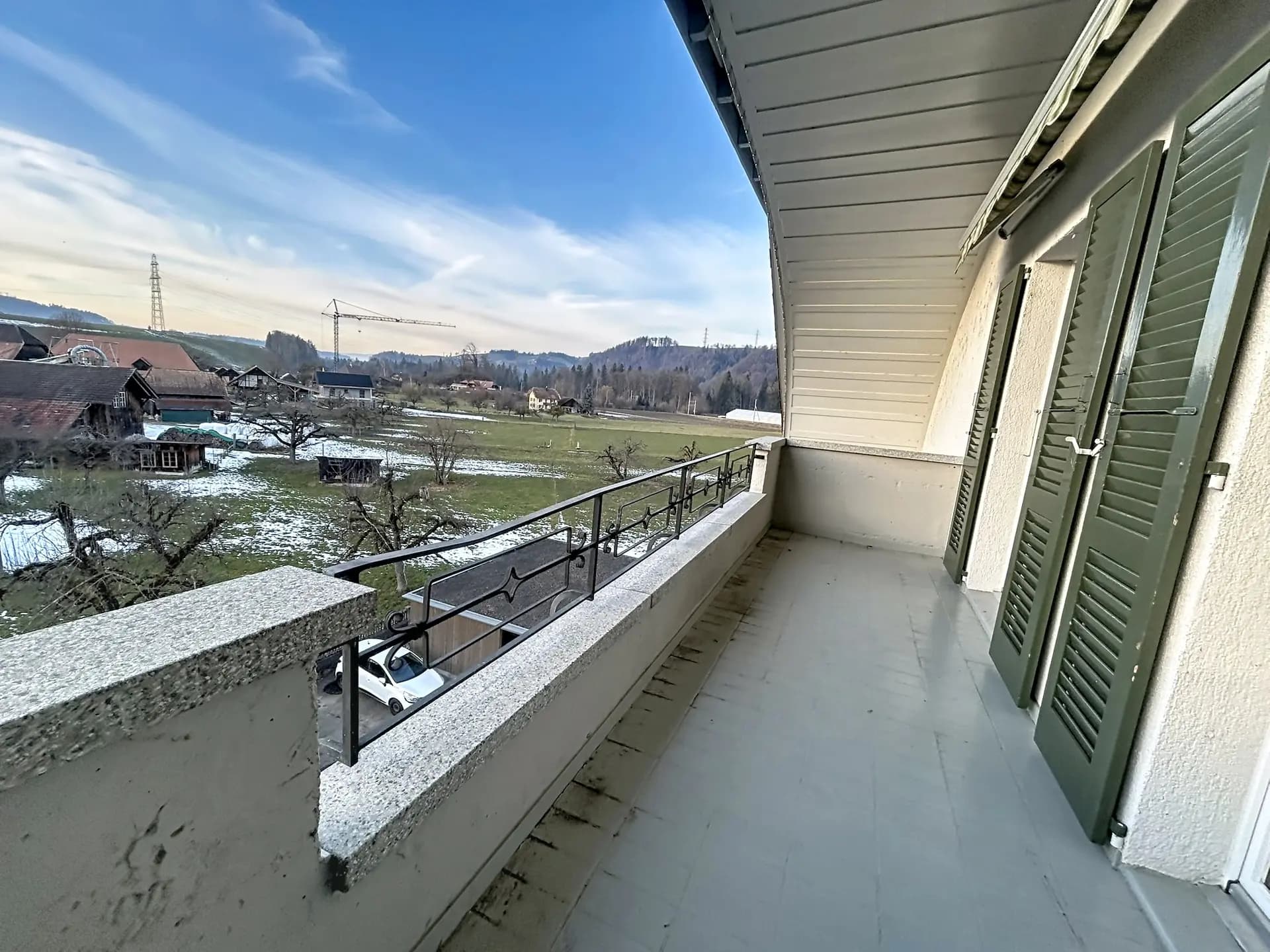 Ein besonderes Highlight ist der grosszügige Balkon mit Weitsicht, der zum Entspannen einlädt und den Blick über das Emmental öffnet. Hier lässt sich der Alltag bewusst entschleunigen – ob morgens mit Kaffee oder abends bei Sonnenuntergang.